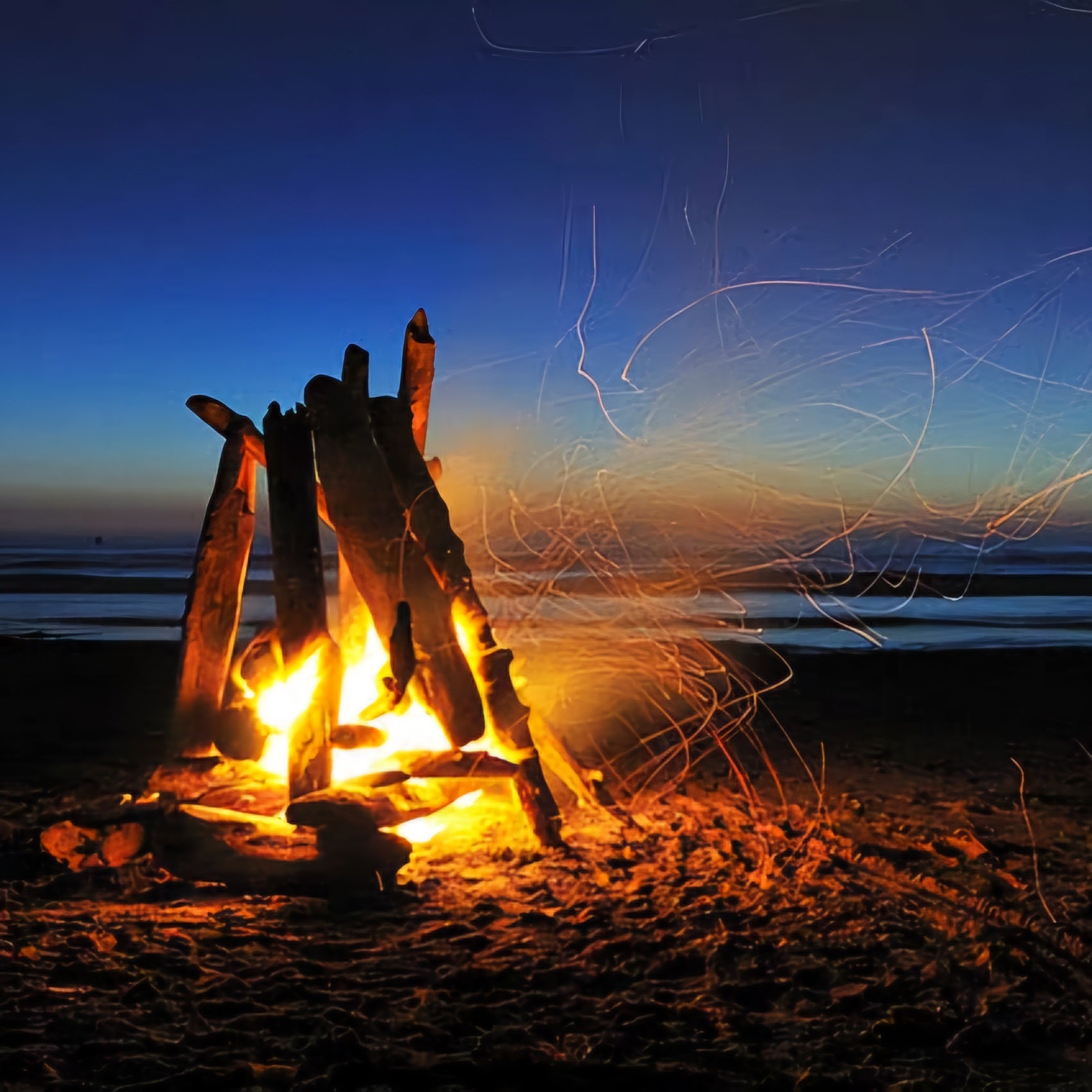 Beach Bonfire is a tribute to those endless summer nights — barefoot on the sand, sparks dancing into the night sky, and the kind of conversations that only happen when time doesn’t matter.